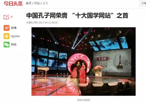 榜单揭晓后,大众网、齐鲁晚报、天津日报、天津网、凤凰网、中国青年网、今日头条、半岛网、中国吉林网、中山国学堂等媒体纷纷编发资讯,对中国孔子网荣膺“十大国学网站”之首一事进行报道。