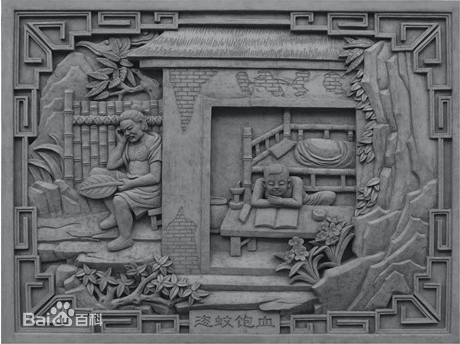 吴猛,晋朝濮阳人,八岁时就懂得孝敬父母。家里贫穷 ,没有蚊帐,蚊虫叮咬使父亲不能安睡。每到夏夜,吴猛总是赤身坐在父亲床前,任蚊虫叮咬而不驱赶,担心蚊虫离开自己去叮咬父亲。