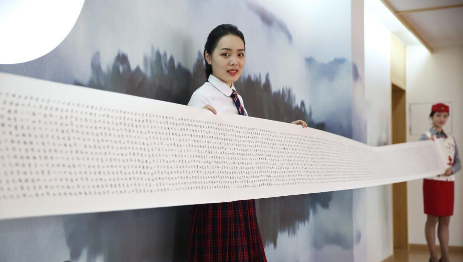 5月12日,在母亲节到来前夕,成都某高校的“00后”女孩吕楚涵利用课余时间为母亲抄写了一份《金刚经》,作为母亲节的礼物,感谢母亲的辛勤付出。整幅作品长约10米,宽1米,字体工整、漂亮。吕楚涵说:“也没有刻意去做这件事,平时就爱好读书、书法,尤其是佛教经典经书。这次母亲节,把自己亲手抄写的《金刚经》送给妈妈,我想她一定会喜欢的,也希望能给带给妈妈好运。”她将通过邮寄的方式将《金刚经》寄给母亲,祝福母亲节日快乐。