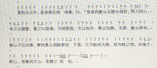 附言:由此也可看出《长恨歌》《木兰辞》的吟诵旋律和《吕相绝秦》的基本音乐旋律是一样的。