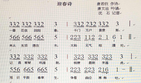 同样道理,“唐调”吟诵的旋律就是太仓、苏州乃至江南音乐旋律在这个读书调上的直接运用。这个音乐旋律,表现唐文治吟诵的所有诗文上,而尤其表现在吟诵的尾腔上。