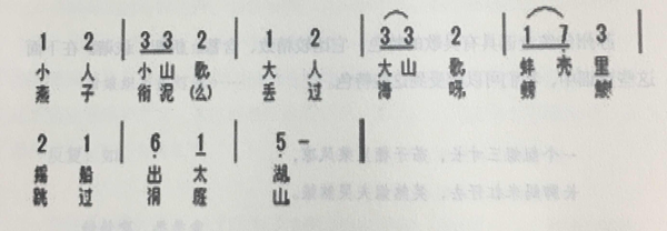 在苏州,有些童谣的尾腔也是“2 1 6 1 5 ——”,如《小人要唱小山歌》(图19):