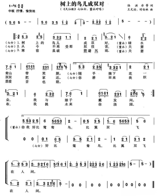 这里也想辩证地说明一下:“唐调”的声腔、韵律,其源头在太仓传统读书调和吴地音乐,这是铁的事实,毫无疑问。但是这个调子的形成也可能或多或少地也受到吴汝纶的影响。支撑这一说法的理由起码有两点:一是,吴汝纶给唐文治传承的不单单是读书方法,也做过诵读的具体指导,仅我们知道的就有在日本时他曾以唐文治的新作《奉使日本国记》为例进行过诵读示范。二是,以“6 5 3(2 1 6)”为尾腔的音乐、戏曲,吴语地区很多,而吴汝纶的家乡安庆也有,如世人都熟悉的黄梅戏《天仙配》中《夫妻双双把家还》一段就有4处的尾腔是 “2 1 6 5—”(图20)。