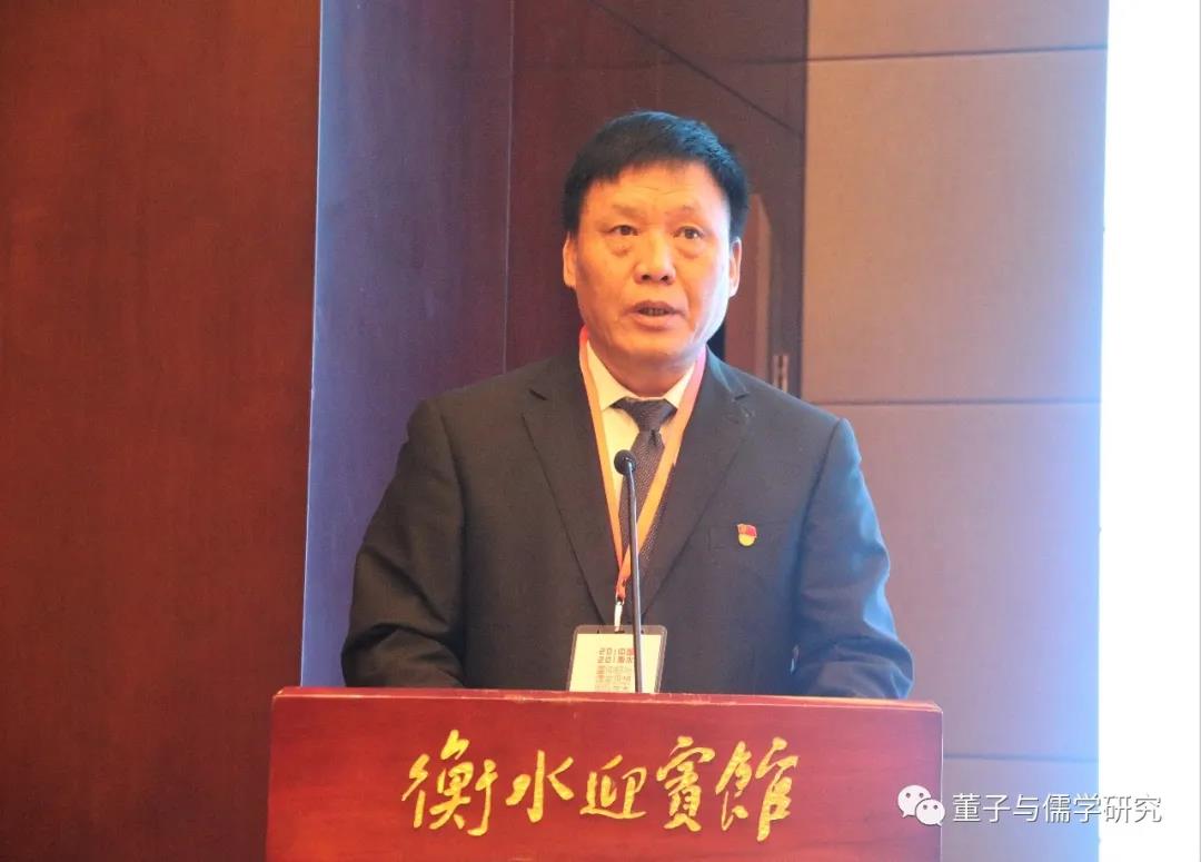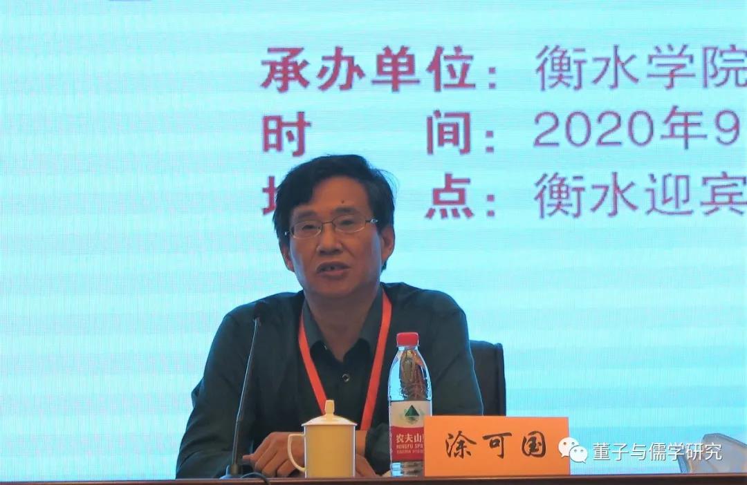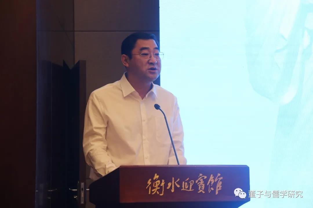 中国实学研究会副会长、山东社科院国际儒学研究与交流中心主任涂可国教授致辞,他从实学和董学关系的角度,指出董仲舒治国理政思想展示了充分的实学要素;从董学与衡水关系的角度,指出“文化衡水”是衡水市的一个重大战略谋划,而董学的发展为其提供重要支撑。