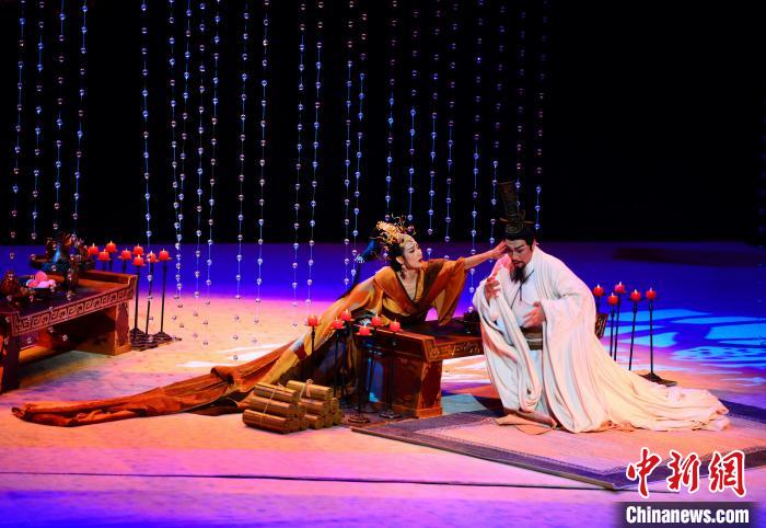 话剧《孔子》在山东首演。图为,盲乐师以琴点化孔子,让他第一看见天下,第二看见了苍生,第三看见了自己。 邱江波 摄