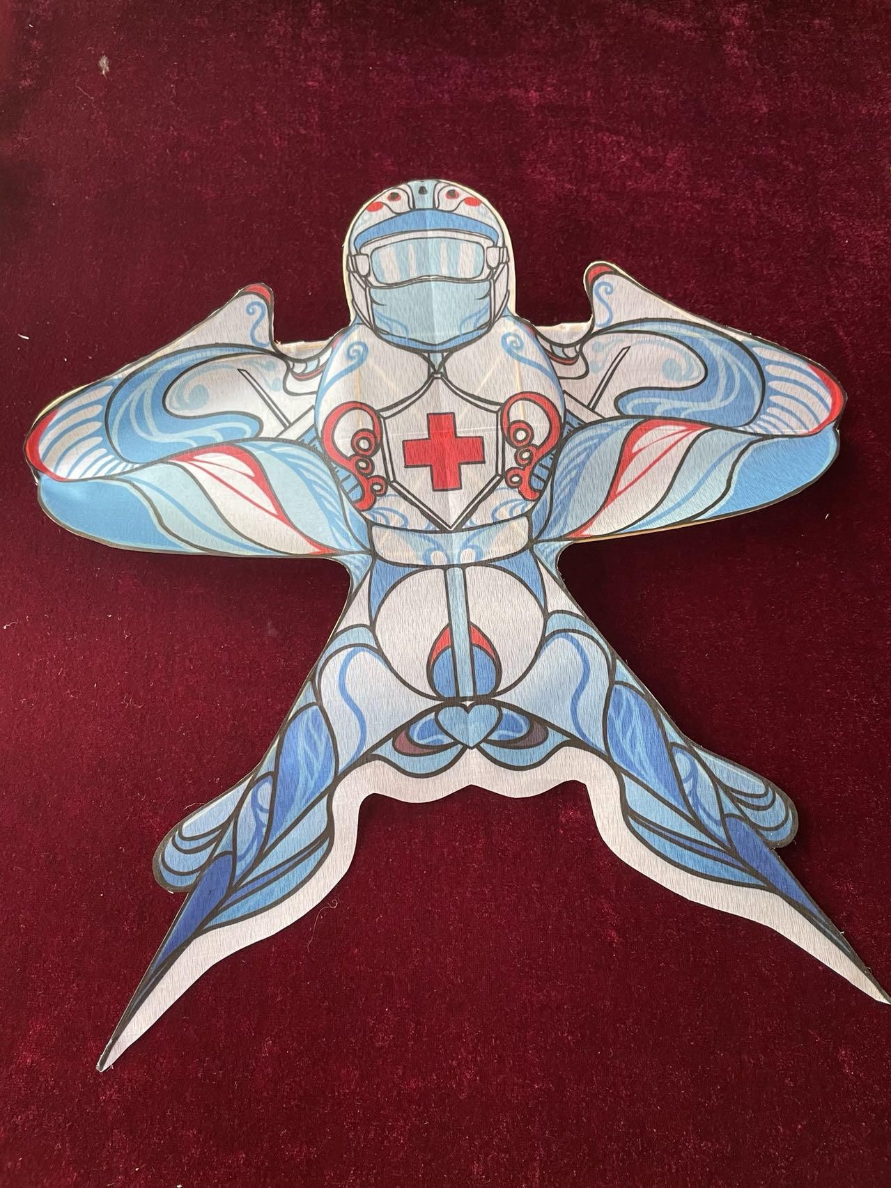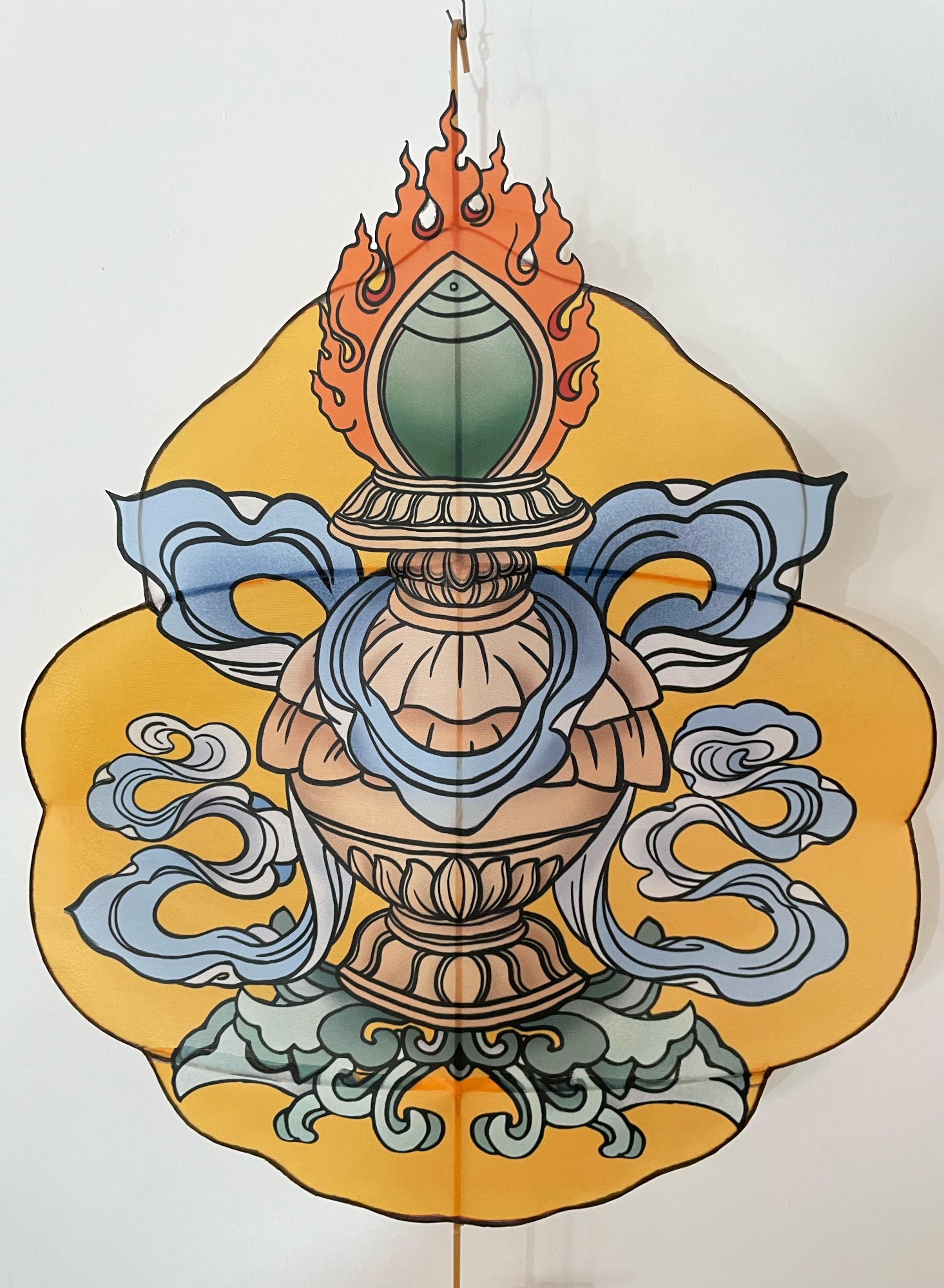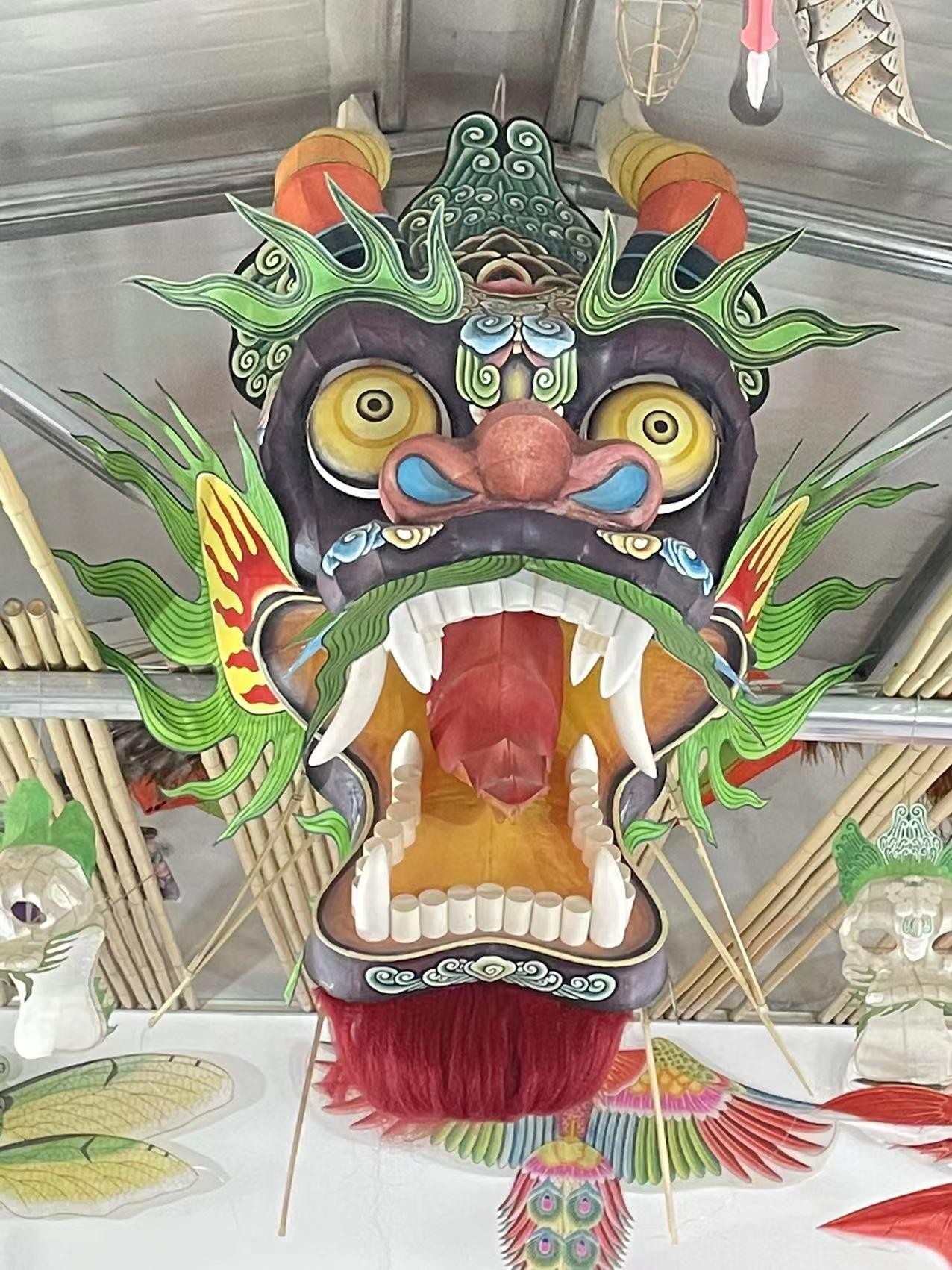 구어홍리가 자신이 제작한 연을 전시하고 있다.