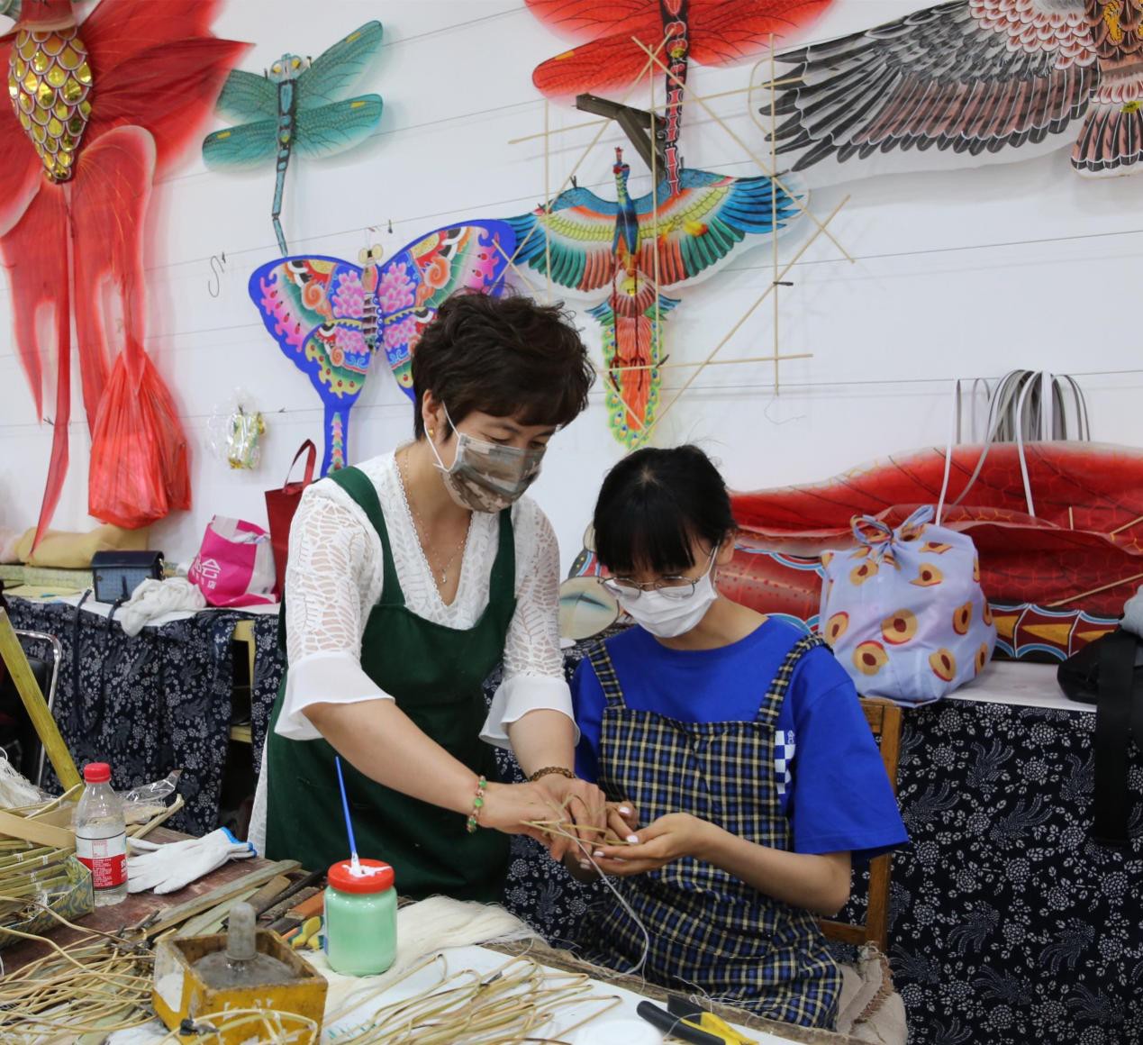 지우링허우(90後) 대학생이 종이연 묶는 법을 배우고 있다.