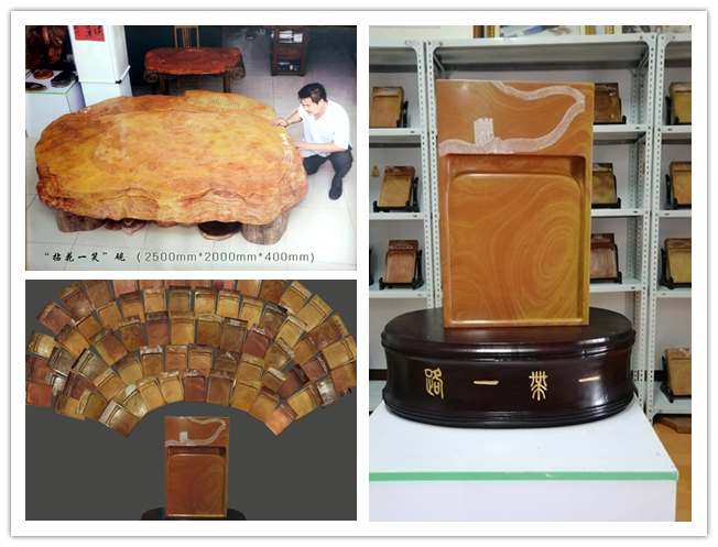 ‘상석(相石),하황(下荒), 설계, 제작, 타마(打磨),상랍(上蠟) ’은 홍사벼루 가공의 여섯가지 공정이며 절도(切刀), 복도(腹刀), 측도(側刀), 비도(飛刀), 삽도(澀刀)는 벼루의 주요 조각법이다.