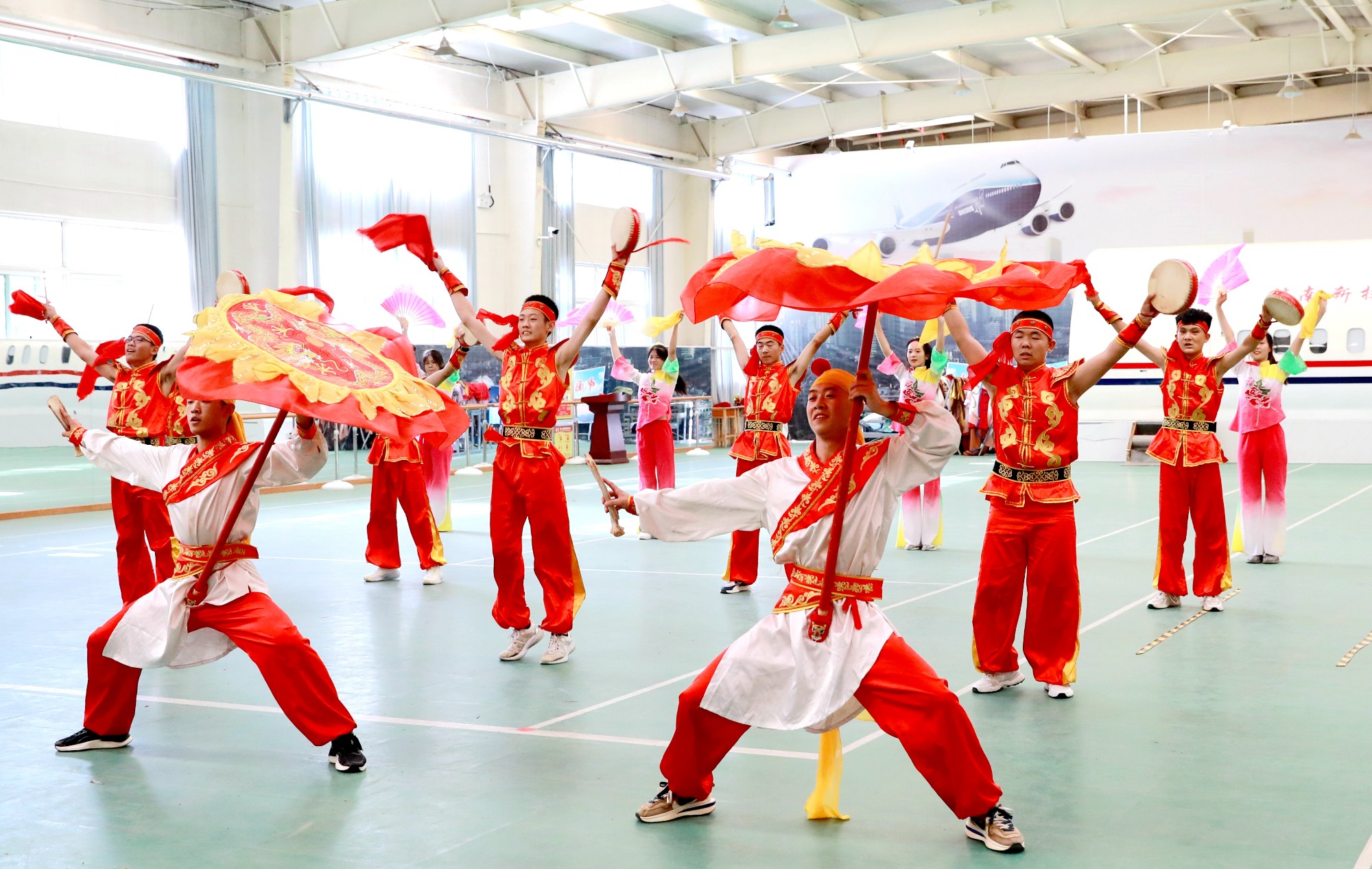 “咚、咚、咚……”在铿锵激烈的鼓乐指挥下,队列规范,舞姿舒展,伞、鼓、棒、花,各大角色各显神通,令人振奋。表演者是济南市新技术应用学校鼓子秧歌队的成员,这群青春洋溢的少年吸收商河鼓子秧歌各家流派之经典而自成一家,展现了鼓子秧歌飘逸自然与气势磅礴的双重美感。