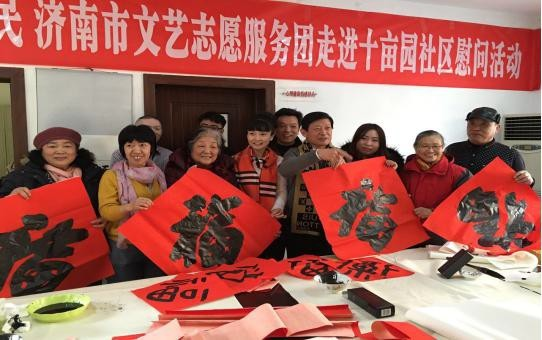 此外,山东嘉诚中外文化艺术交流中心还积极开展文化下基层活动,深入生活、扎根人民。2019年,山东嘉诚中外文化艺术交流中心到济阳区垛石镇柳家村幸福院开展“迎春送福”活动。10名书画艺术家参加本次活动,他们挥毫泼墨、笔走龙蛇,一张张饱含真情的“福”字,寄托着对新一年美好的希冀与憧憬。老人们在一幅幅书法作品中感受浓浓年味,体味文化之美。