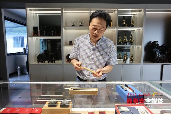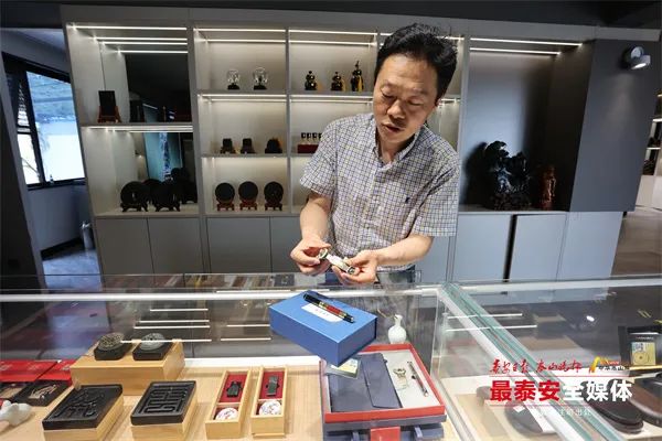 小巧精致的书签、泰山玉打造的文房四宝、可组合搭配的礼盒……走进泰山区各文创企业,传统文化的气息扑面而来,琳琅满目的产品展示着精湛的手工艺和泰山文化的魅力。