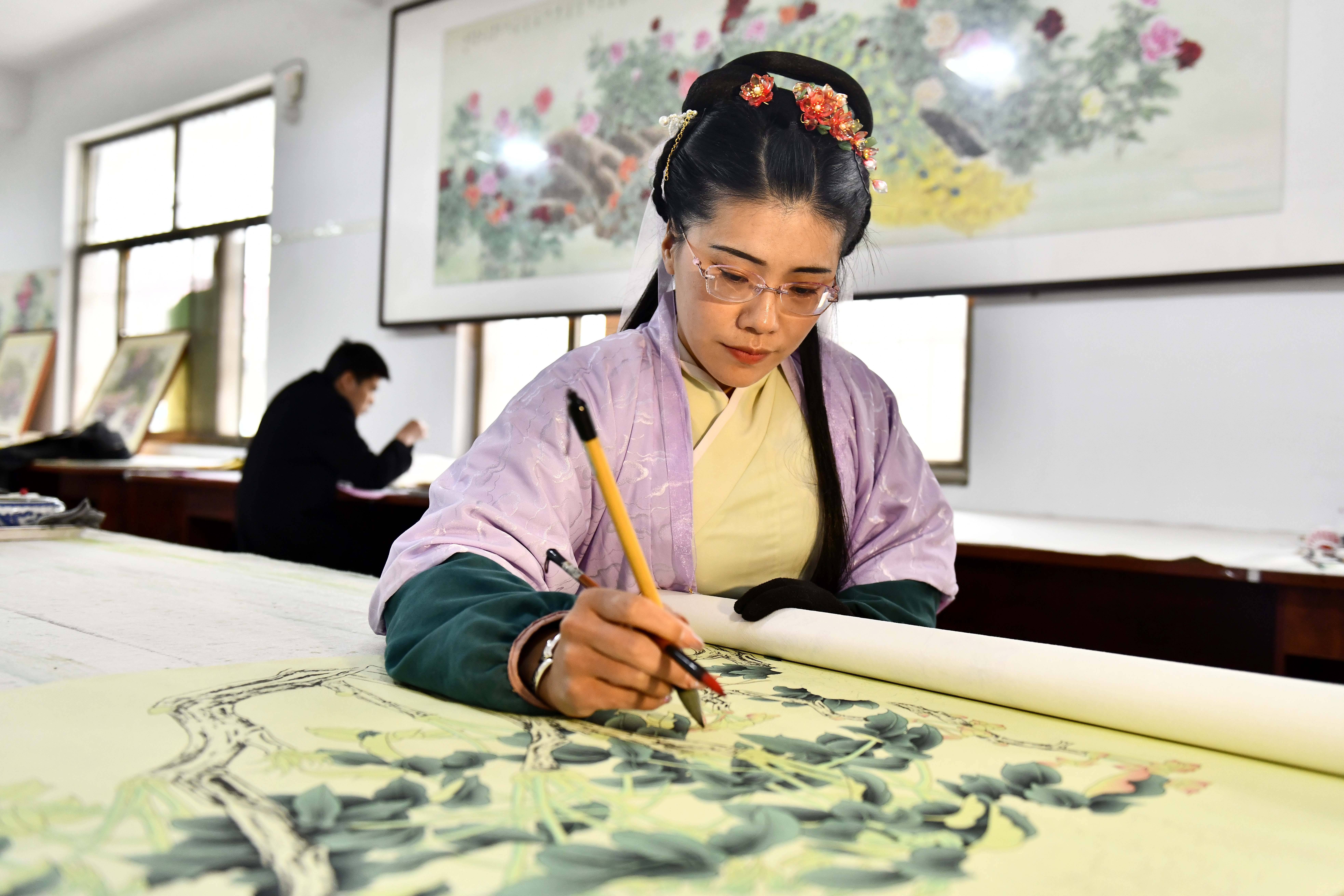 “唯有牡丹真国色,花开时节动京城。”菏泽是中国牡丹之乡,菏泽市巨野县洪庙村依托“菏泽牡丹”这一特色IP,推动了省级非遗巨野工笔牡丹画的创作与销售。村里有近百名村民从事牡丹花的绘画工作,每年创作绘画作品近两万幅,年产值可达800万元。
