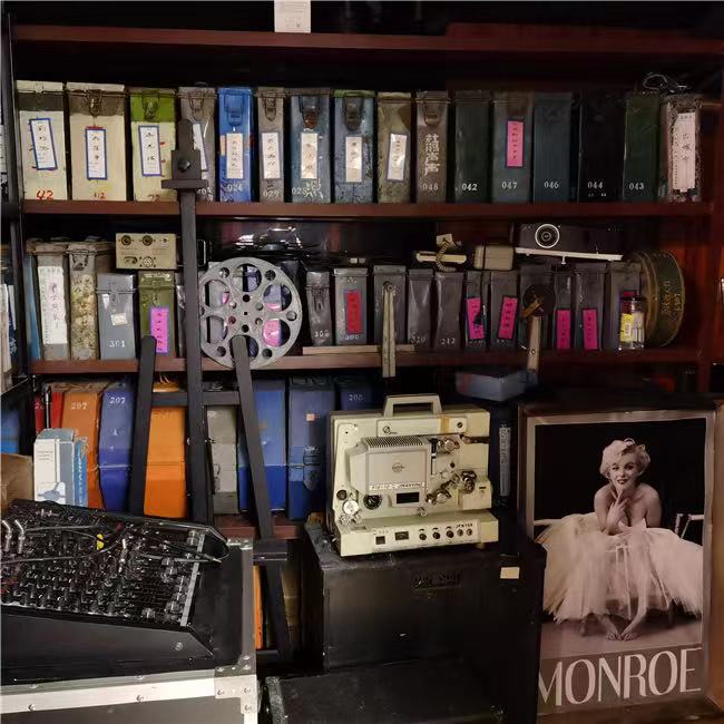 在复原的建筑内部,李建军从世界各处淘来近4000千件老放映机、老电影胶片、老电影海报、电影剧照等一切与电影有关的藏品,精心布置,展示在不同的角落。