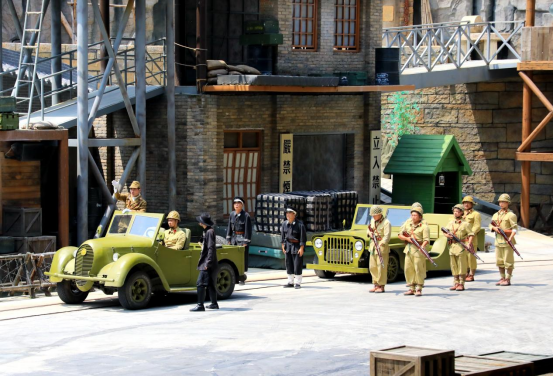 枪战炮火、车辆特技、跑酷攀爬……火热夏日,泰山秀城内,《铁道游击战》火车特技特效大型沉浸式实景演出,以极具震撼的视觉冲击力,再现铁道游击战的红色传奇,点燃在场观众的红色记忆。爱国热血激荡澎湃,引爆全场!