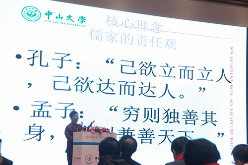 中山大学教授黎红雷做主题演讲,并带领与会嘉宾诵读儒家经典名句