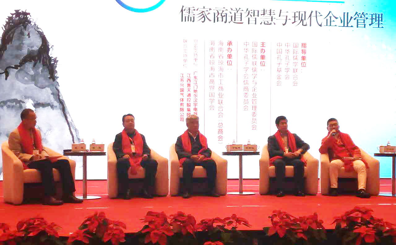 中华孔子学会副会长李存山在致辞说,博鳌儒商论坛是我国儒学学术界与企业界更加密切结合的一次盛会,是标志着新时代的儒商走向复兴的一次盛会。这次的会标在“儒”字中包含了“子贡”二字,体现了当代儒商效法子贡“博济众生、立己立人、生财有道、富而好礼”的精神内涵。