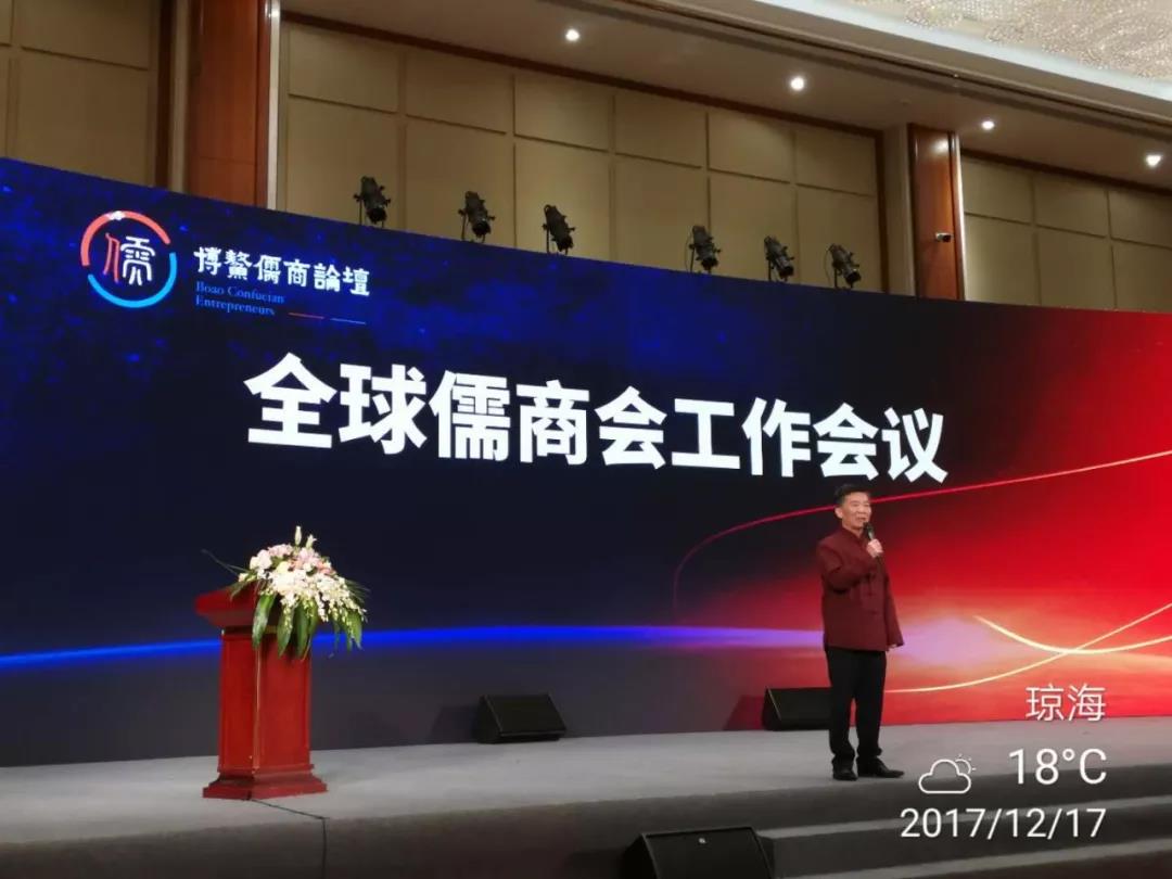 12月17日下午,博鳌儒商论坛理事长黎红雷教授在主持全球儒商工作会议,来自美国、英国、新加坡以及全国各地儒商机构负责人和代表500余人参加了会议。