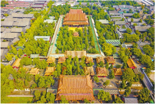 秋日时节的曲阜孔庙建筑群。(新华社记者郭绪雷报道)