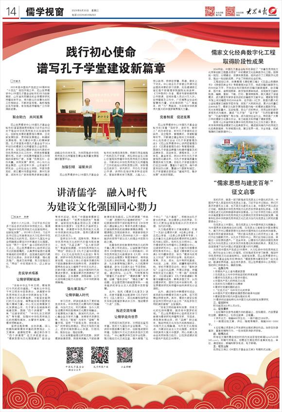 按照《山东省传承发展中华优秀传统文化工作方案》要求,未来将持续推进儒家文化经典数字化,建成面向海内外的传统文化经典数据库,科学梳理分类,建立世界一流、齐全完备、权威准确的文献数据中心。
