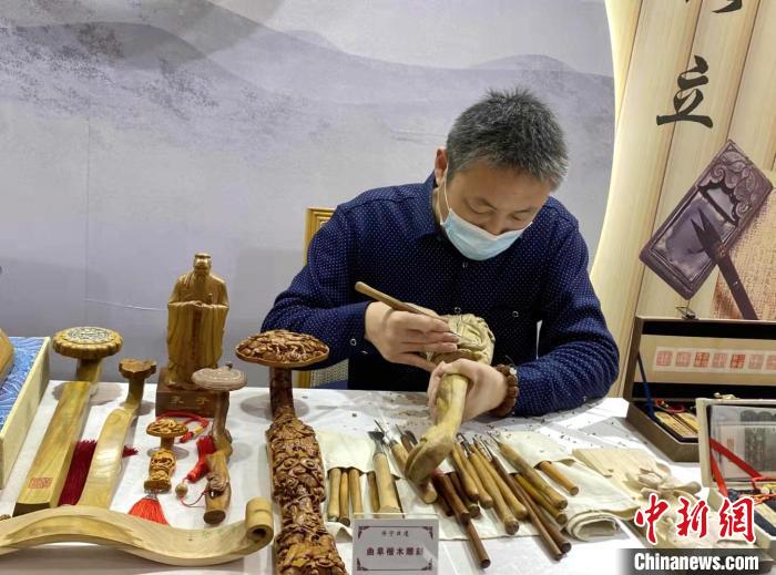 传承人现场展示曲阜楷雕。 李明芮 摄