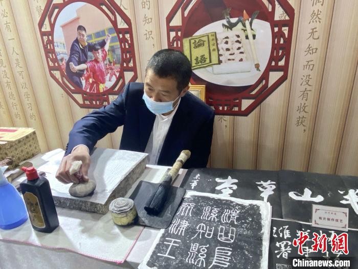 手工匠人现场展示拓片制作技艺。 李明芮 摄