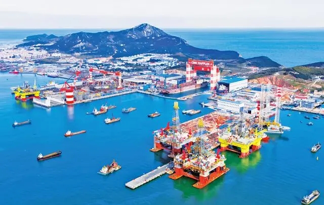 山东认真贯彻落实习近平总书记关于发展海洋经济的重要指示要求,加快发展高端海洋工程装备制造业,初步建成船舶修造、海洋重工、海洋石油装备制造等三大海洋制造业基地。图为我国最大的半潜式钻井平台制造基地烟台中集来福士海洋工程有限公司的建造区。山东省委宣传部供图