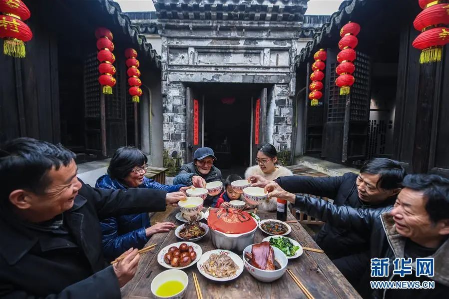 这是一年中最为隆重的活动,出嫁的女儿拖家带口回来了,在外地工作的儿子脱下了西装,还得惊动不少邻舍,一起扛起饲养了一年的肥猪,先放一挂鞭炮,再一刀毙命,在欢乐的吆喝声中完成屠宰,并一气呵成,迅速折腾出一桌热气腾腾的杀猪菜。上桌的客人越多越好,寓示着来年热热闹闹、红红火火。