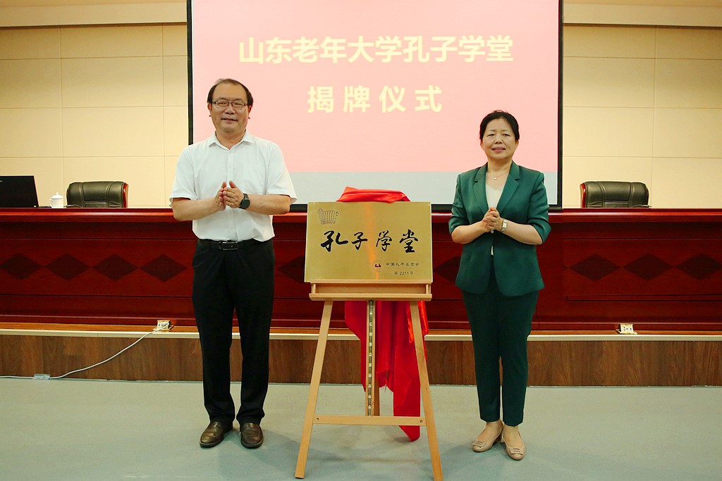 6月17日下午,山东老年大学孔子学堂授牌仪式在山东省老干部活动中心举行,尼山世界儒学中心(中国孔子基金会秘书处)党委书记、副主任,中国孔子基金会副理事长、秘书长国承彦,山东省委老干部局副局长兼山东老年大学校长吕德义出席活动,并共同为孔子学堂揭牌。