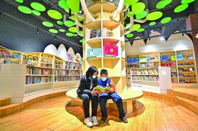 读者在山东省青州市一处城市书房阅读书籍。新华社发