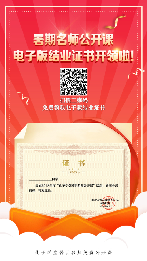 学习完“孔子学堂暑假名师公开课”的你们,请快来领取结业证书吧,这是属于我们的时光记忆!