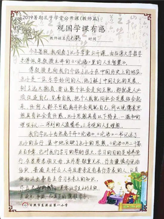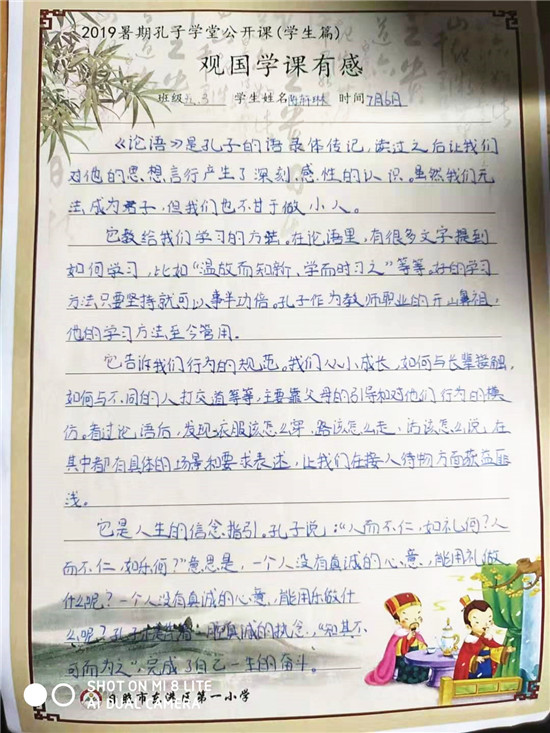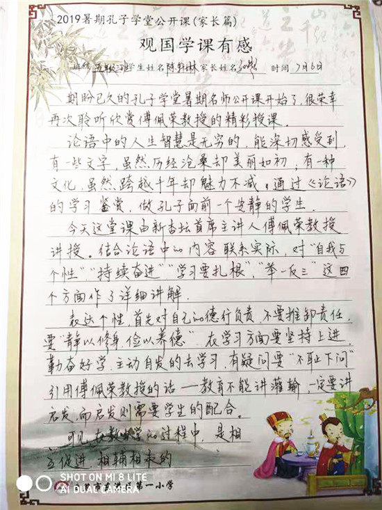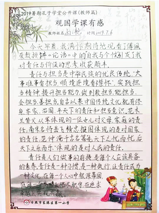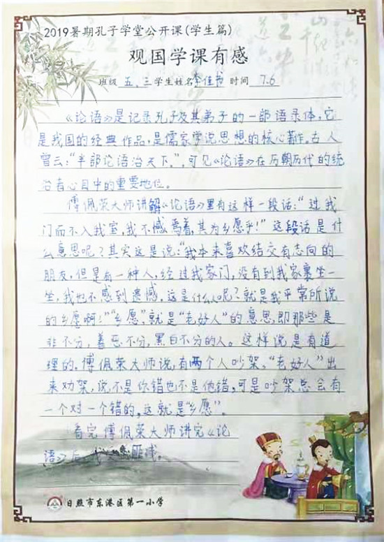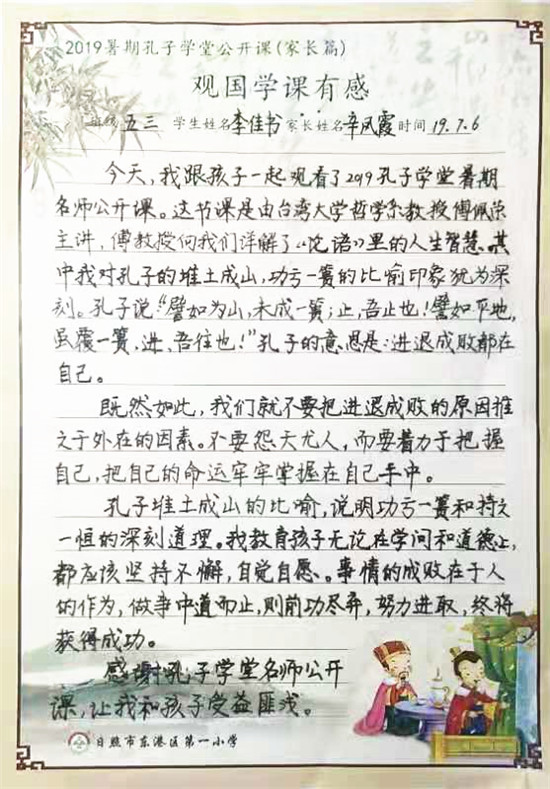 编:去年一别今夏见,今夏相见随心愿。2018年夏天,由中国孔子基金会主办的“孔子学堂暑期名师公开课”为广大国学爱好者带来一个完美的假期,山东省日照市东港区第一小学作为重要学堂单位,与暑期公开课“相知、相识”,积极组织师生观看课程、抒发感悟。今夏,2019孔子学堂暑期名师公开课再度上线,携带更丰富的课程内容、更优质的课程水准,与东港一小“不期而遇”、“久别重逢”。