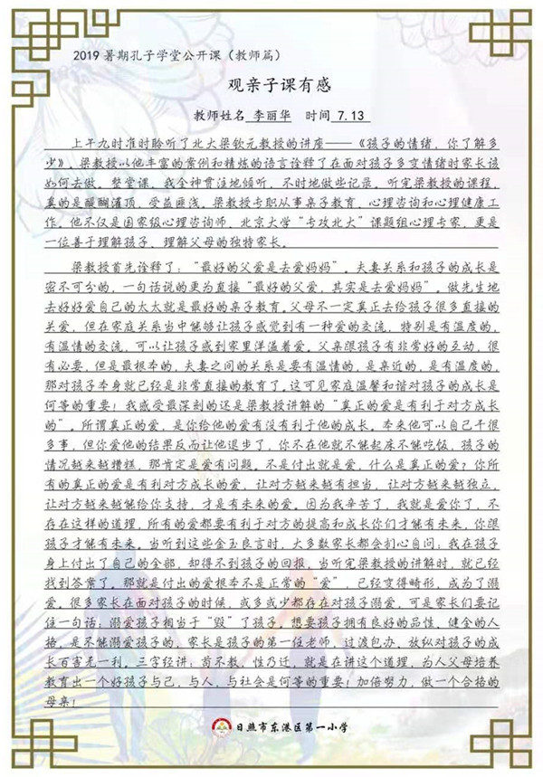 最好的亲子关系是相互成全 日照东港一小公开课观后有感