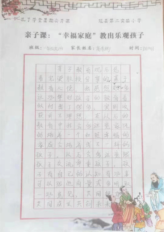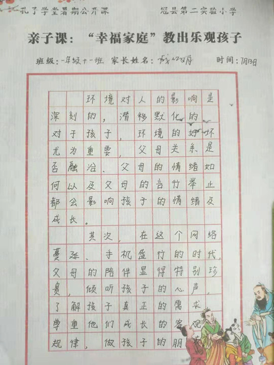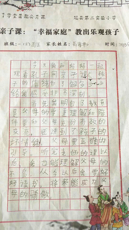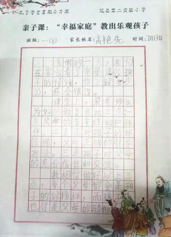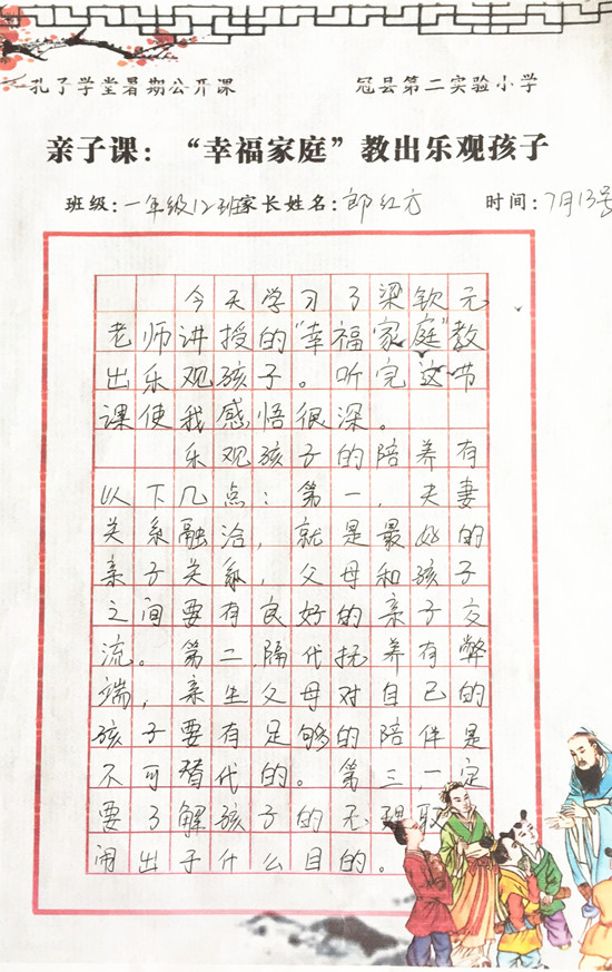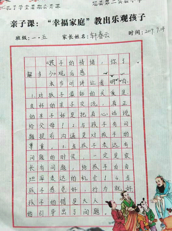 编:弘扬优秀文化,立志修身正君子,近日,山东省聊城市冠县第二实验小学孔子学堂组织学习观看“2019孔子学堂暑期名师公开课”。“能带给孩子成长的爱,是真正的爱……”随着公开课第二讲“孩子的情绪,你了解多少”正式开课,冠县第二实验小学的家长、孩子们跟随国学大师梁钦元,共同学习、解析“亲子关系”中的“心理动因”,结束观看后,写下了一篇篇精彩的体悟、感悟……让我们一齐分享: