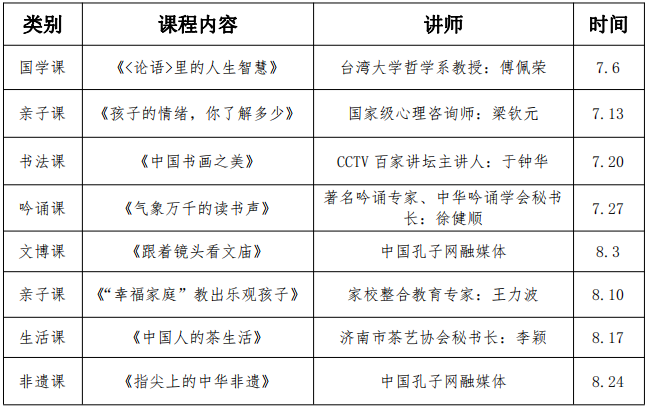 2019孔子学堂暑期名师公开课课程表: