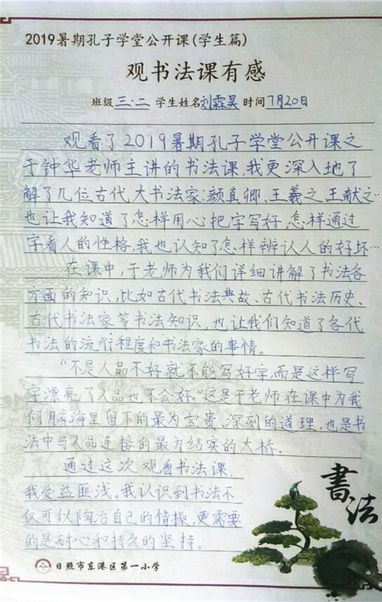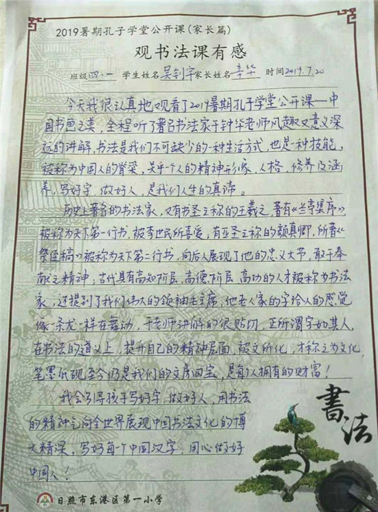 各地师生、学生家长反响热烈,纷纷表示收获良多。冠县第二实验小学的师生们为此次精美且实用的公益课程赞叹有加,并亲自拿起纸笔,书写经典。
