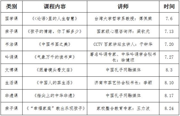 2019孔子学堂暑期公开课课表