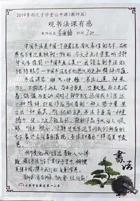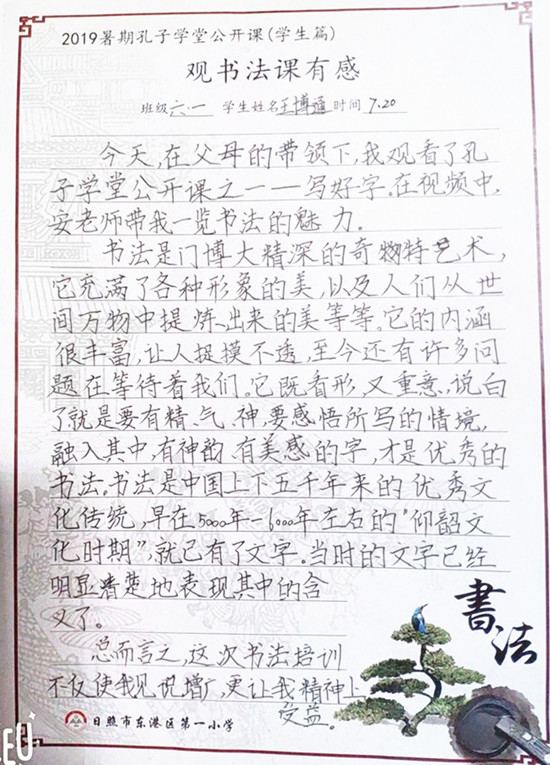 “文章为之用,必假乎书” 日照东港一小“书法课”观后感来袭