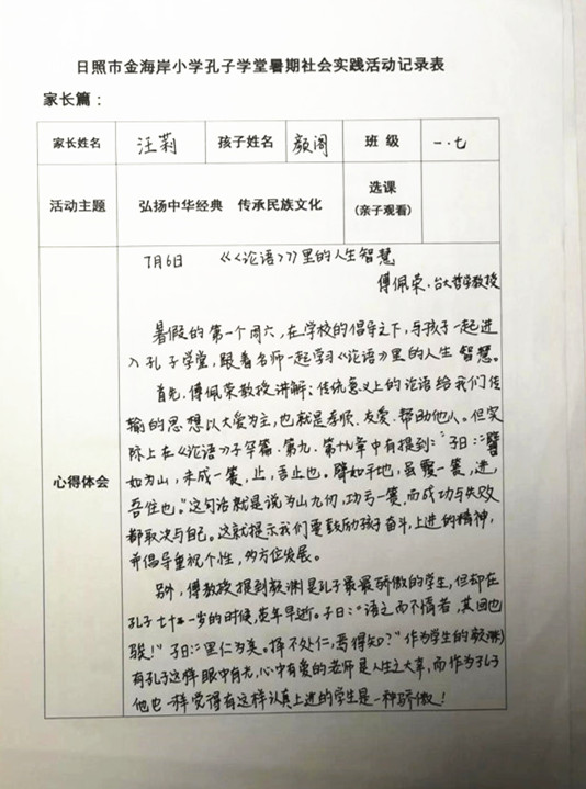 浸润经典 丰盈人生——日照市金海岸小学2019年孔子学堂“暑期社会实践”活动纪实