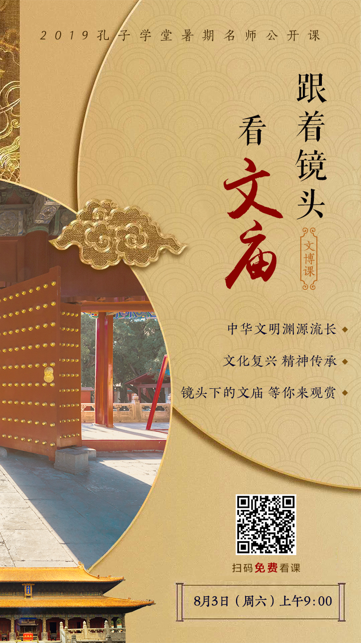 8月3日上午九时,由中国孔子基金会主办的孔子学堂暑期公开课第五讲《跟着镜头看文庙》如期上线!同时在线观看人数达9万人次,截止到发稿文博课累积播放量近20万。