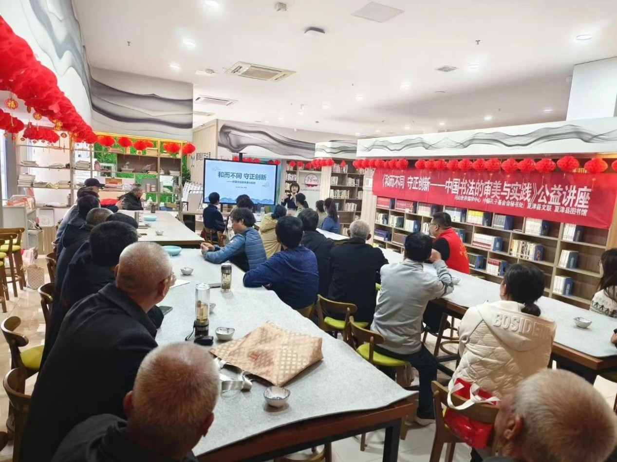 活动吸引了众多书法爱好者的关注与参与。辛毅以《和而不同 守正创新——中国书法的审美与实践》为题,围绕书法发展史、书法要素等,深入浅出地讲解了书法的审美标准和创作技巧。理论讲解之后,带领大家进行书写实践,共同体验了书法的独特魅力。公益课的成功举办,为基层书法爱好者提供了一个学习交流的平台,进一步提升了基层群众的文化素养和艺术修养。