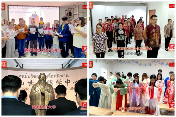 “云祭孔”活动还得到尼山世界儒学中心海外分中心、海外孔子文化中心的大力支持和积极参与。韩国泗川乡校、泰国格乐大学、印尼大道文化研究中心孔子学堂、俄罗斯哈巴友好协会、泰国中国国际学校也通过直播和录播的形式展示当地独具特色的祭孔活动。