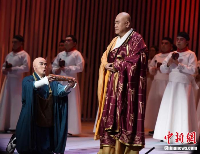 “以西方歌剧艺术形式讲述东方流传千年史诗”的《鉴真东渡》亮相美国加州洛杉矶帕萨迪纳市政礼堂。 张朔 摄
