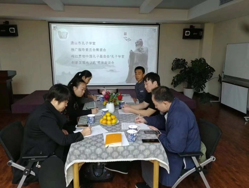 唐山孔子学堂袁风遥、薛建、佐卫东三位老师赴济南参加中国孔子基金会举办的创新发展孔子学堂培训班,结束后回到唐山立即召集了唐山孔子学堂推广指导委员会(筹)会议,进行了贯彻济南会议精神以及谋划唐山推广工作的研讨会。