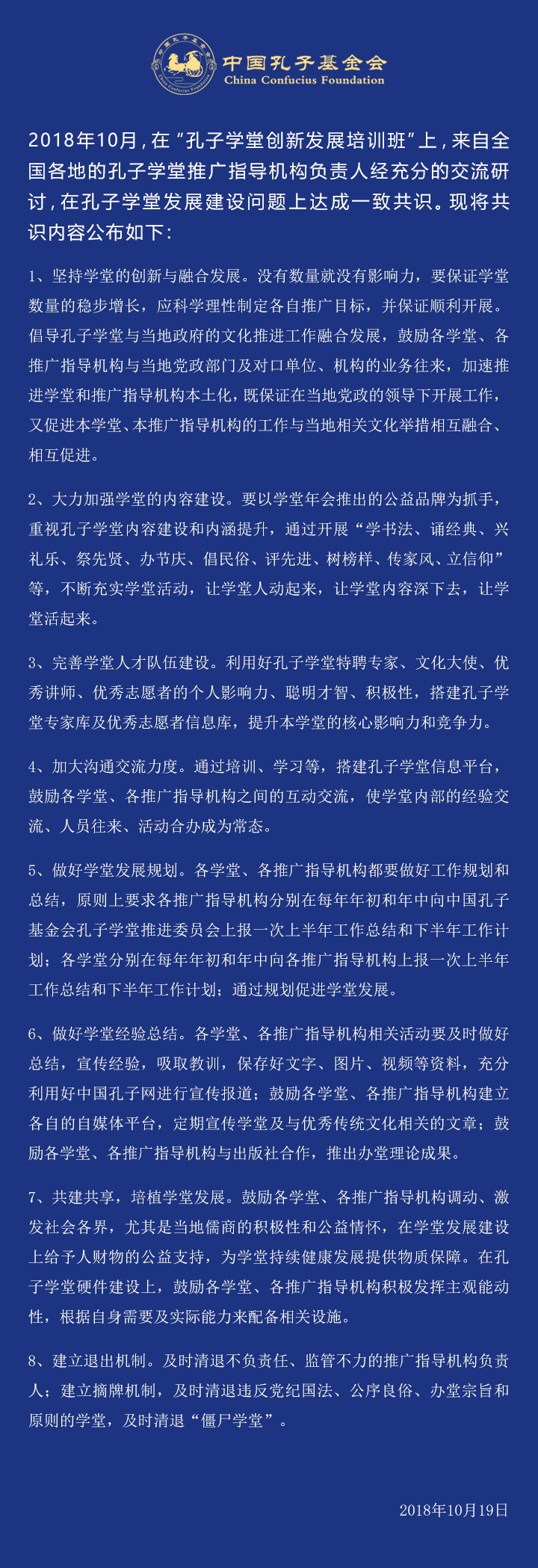 在习近平总书记视察曲阜五周年之际,为促进孔子思想与时代发展、社会关切、百姓需求的深度融合,推动大型公益文化品牌“孔子学堂”的健康发展,进一步提升“孔子学堂”的内容建设和内涵提升,“孔子学堂创新发展培训班”会议于10月17日至20日在济南隆重召开。