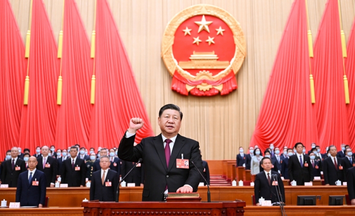 新当选的国家主席、中央军委主席习近平进行宪法宣誓