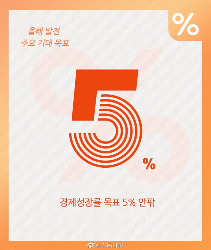 제14기 전국인민대표대회(전인대) 제1차 회의가 5일 오전 9시 인민대회당에서 개막했다. 리커창(李克強) 국무원 총리는 정부 업무 보고에서 올해 국내총생산(GDP) 성장률 목표치를 "5% 안팎"으로 제시했다.