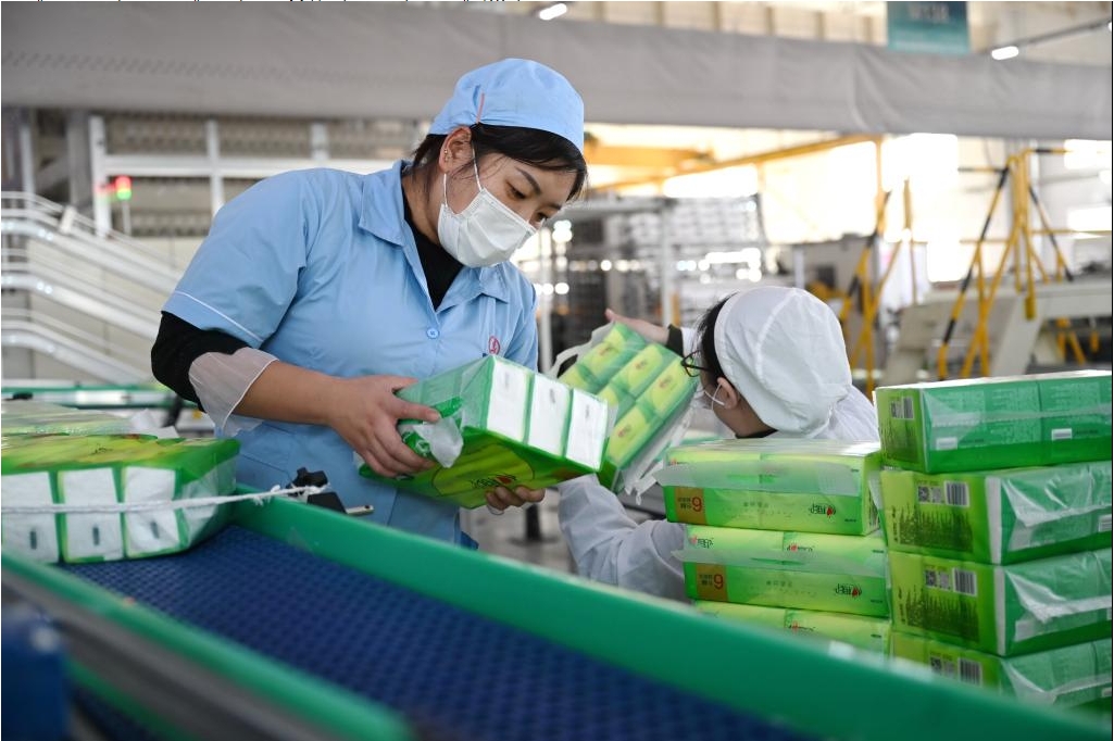 푸젠(福建)성 취안저우(泉州)시 진장(晋江)시의 한 민영기업 직원이 지난 2월 2일 포장 컨베이어벨트에서 제품을 검수하고 있다. (사진/신화통신)