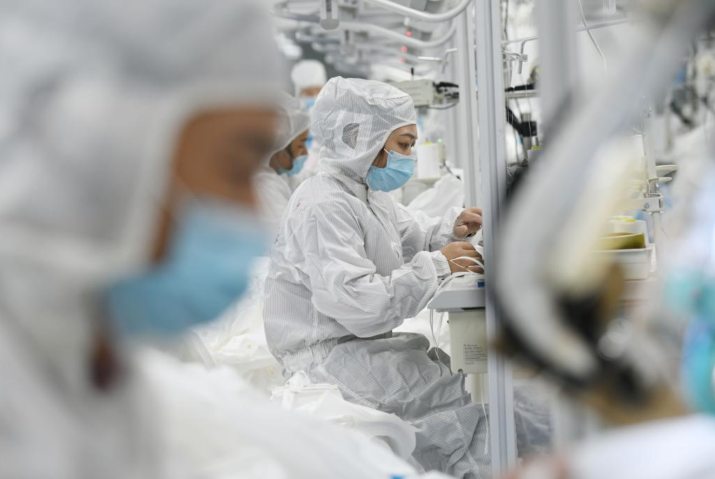 지난해 4월 27일 푸젠성 푸저우(福州)시의 한 민영기업에서 방호복 제작이 한창이다. (사진/신화통신)