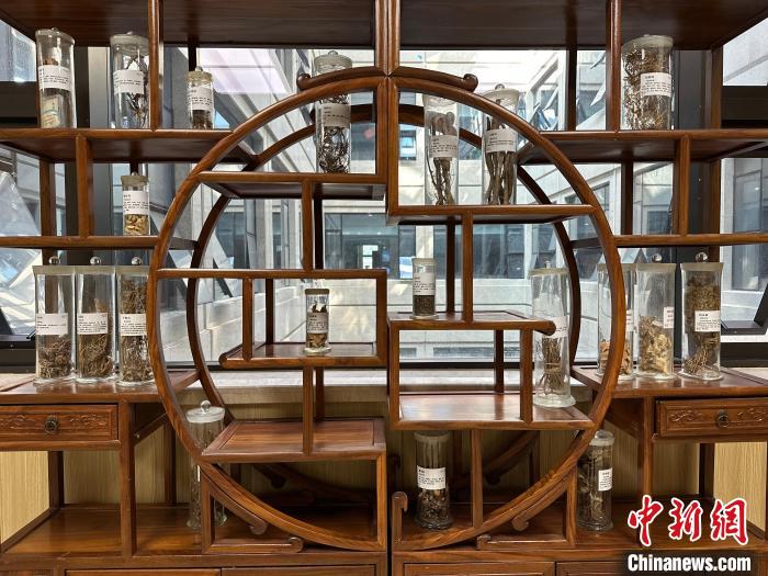 在展陈柜上的众多畲药标本。 景宁县委宣传部供图