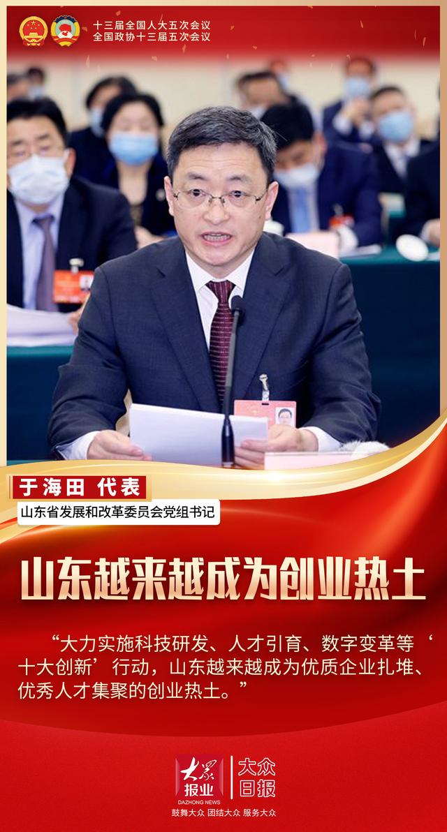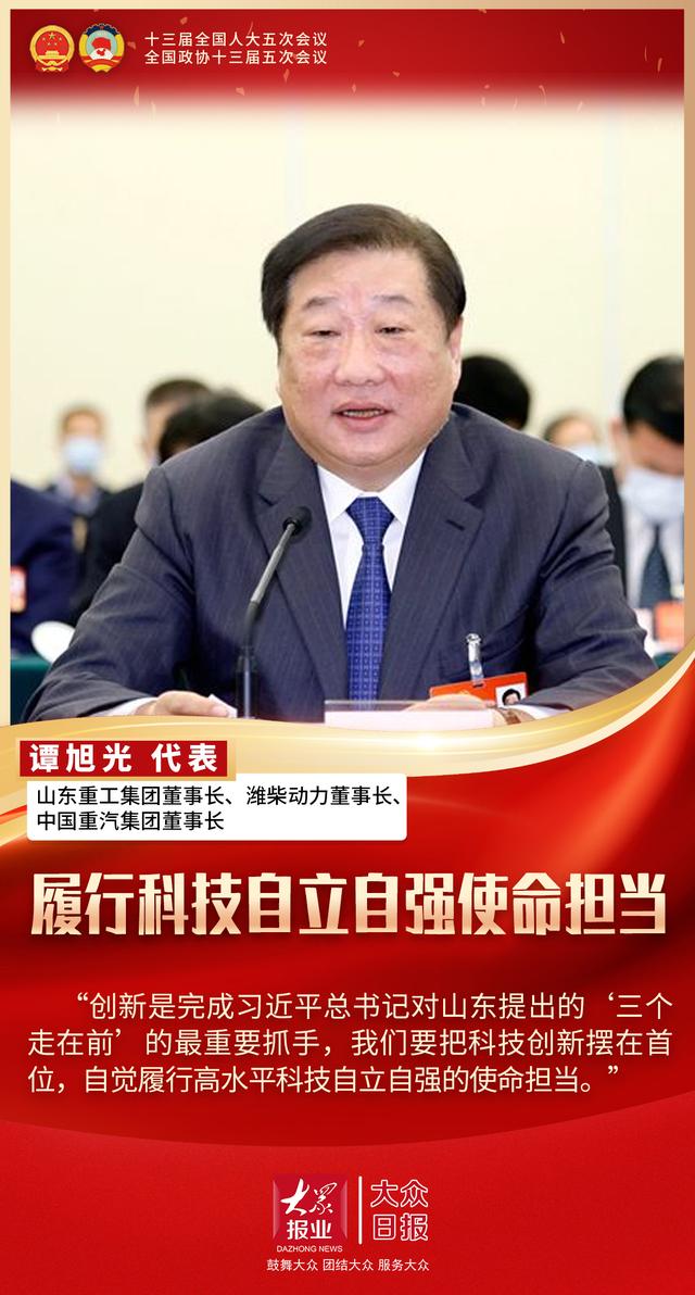 3月5日下午,出席十三届全国人大五次会议的山东代表团举行全体会议,审议政府工作报告。谭旭光、樊丽明、李长青、李燕、于海田、宋文新、魏德东、张永明等8位代表先后发言。